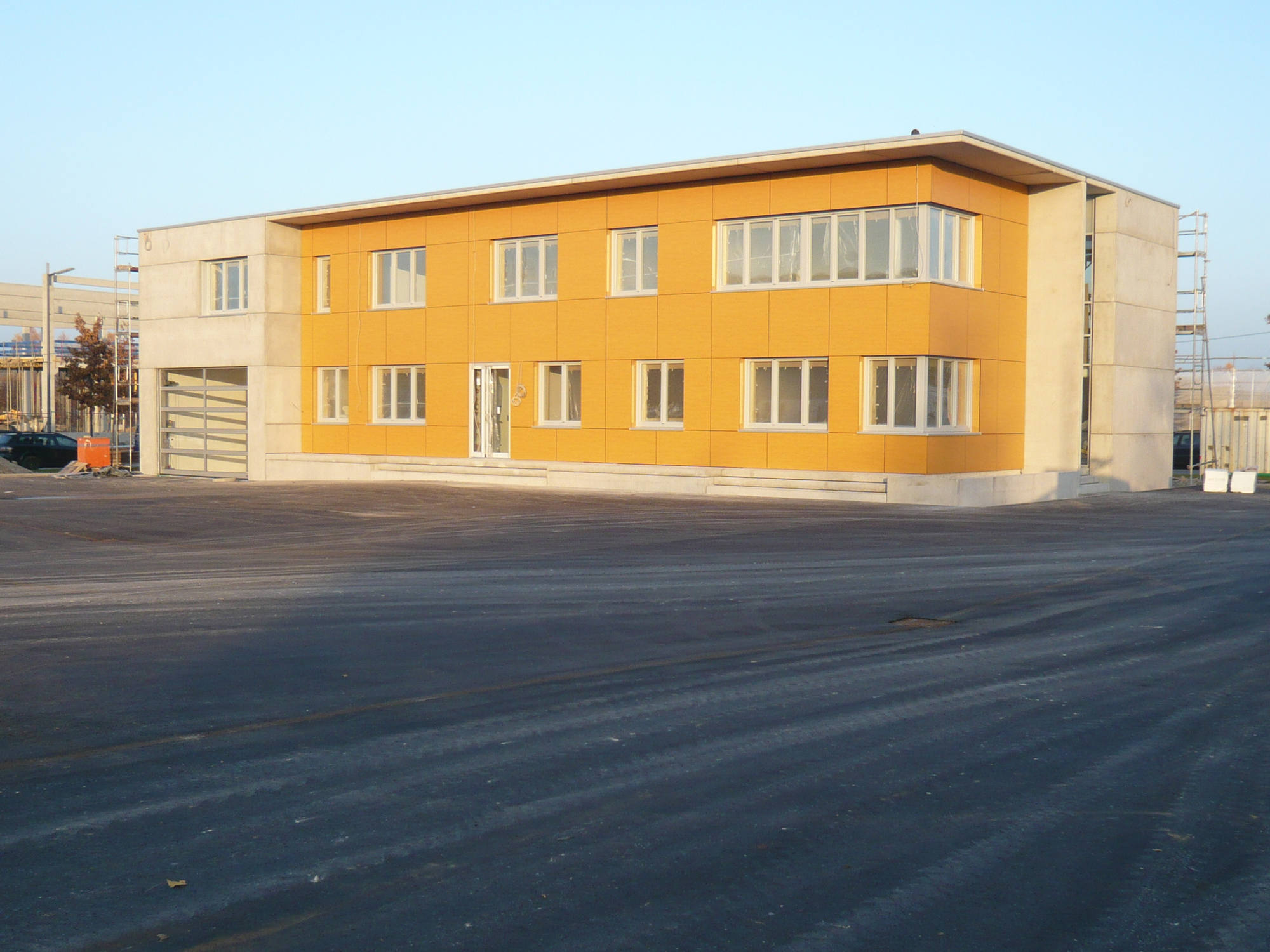 - Neubau eines Bürogebäudes mit 450m² Bürofläche und einer Lagerhalle mit 350m² Nutzfläche auf einer 6.000m² großen Fläche